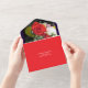 A lovely floral wedding invitation with a red rose, just tear of the RSVP request so handy.