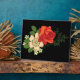 Beautiful and colourful bouquet of flowers, red rose and white daisies on black background.