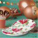 Red rose and white classic print plate. This beautiful classic floral collection will be perfect for an indoor or outdoor garden celebration for a wedding, bridal shower, baby shower or a country style celebration. The entire collection is customisable. Enjoy your celebration, cheers!