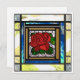 Red Rose Art Deco Teal Stained Glass Card