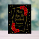 Gold and black Quinceañera with vibrant traditional red roses and classic script typography
