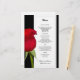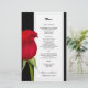 Red rose, black and white wedding menu template. Flat paper is black with white panel that holds black printed text. Very affordable floral paper, yet beautiful design.