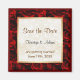 Subtle and elegant in gold edged damask, with a lovely profusion of red roses the border. Customise with your wedding information.