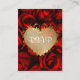 Lovely lush profusion of deep red roses designed on custom RSVP chubby size business card. This floral design has an elegant gold heart banner on card front with RSVP text art Design is available in on other cards and items in my store. Customise information on card back. This RSVP design also available on RSVP size note cards in my store.