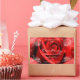 Make a lasting impression with this elegant and modern product label design featuring a red rose blossom with pretty palm leaves and sparkling faux glitter stars.