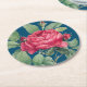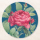 Red Rose Flowers with Green Leaves Round Paper Coaster