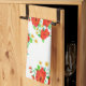 Designer hand towel for kitchen or bath with red art rose pattern. Stylish home decor gift.