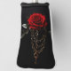 A blood-red rose bound in iron chains on a black background creates a glorious Goth golf head cover.
