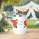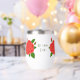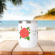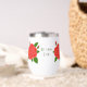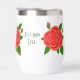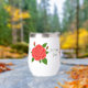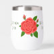A thermal wine tumbler with beautiful red roses with buds and leaves. The background, image and text can be personalised. Original artwork by W.B.