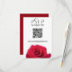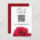 Wedding response cards with realistic red rose and QR code reply option. Customise black text and include a wedding website or other way for guests to reply. Reverse is solid red.