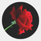 Round sticker shown with a black background and a beautiful red rose. Customise this item or buy as is.