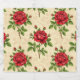 Detailed red roses flowers with green leaves on brown background pattern vintage style design.