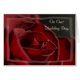 Send best wishes for a lifetime of love to your newlywed husband or wife on your wedding day with the elegant Red Rose Wedding Day card. This pretty custom botanical wedding day card features a close up floral photograph of a red rose flower blossom. Perfect for a classy romantic red flowery or rose wedding theme.