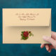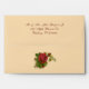 Romantic wedding invitation envelope done in a vintage cream, with vintage artwork of a lovely red rose on the back. The inside of the envelope is done in a rich dark red. Personalise the red return address, on the back flap, to suit your needs. Lovely finishing touch to our Vintage Red Rose Wedding invitation and set.
