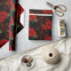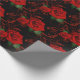 Wrapping paper shown with a black background colour and a pretty red roses floral print.