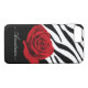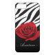 Elegant and stylish floral iPhone 6 case designed with a beautiful red rose over a zebra stripes pattern, and personalised with your name or custom text.