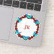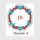 Colourful sticker of a red roses wreath with blue butterflies. There's an editable monogram area in the middle for you to add your own initials
