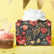 Create dramatic elegance with this stunning seamless pattern featuring bold red roses, golden hearts, and luxurious botanical elements on a sophisticated black background. The rich colour palette of coral red, gold, and deep navy creates a striking contrast perfect for elegant gift wrapping, romantic occasions, or sophisticated celebrations. This opulent floral design combines classic romance with modern luxury for truly memorable presentations.