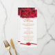 Beautiful bouquet of red roses and joined hearts Wedding Menu Rack Card. You can adjust text according to your requirements.