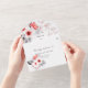 Red roses and white flowers elegant modern wedding all in one invitation