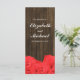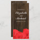 A country themed wedding program featuring red roses on a rustic dark brown barn wood background. Easily customise for your event.