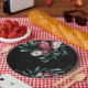 Pretty floral pattern on black background sets the tone for this elegant plate.