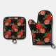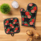 Red roses, black background, oven mitt & pot holder set