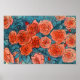 Red Roses, Blue Leaves Rose Garden Summer Flowers Poster