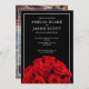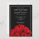 Elegant black background with red roses bouquet image with personal photo on the back. This modern and minimalist wedding invitation is an excellent way to invite your guests. Simply personalise your event information and photo into this template to create a one-of-a-kind invitation.