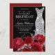 Red Roses Diamond Gown Black 21st Birthday Party Invitation