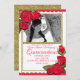 Red Roses Gold Glitter Quinceañera Birthday Party Invitation