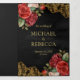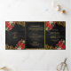 Red Roses Gold Lace Black QR Code Photo Wedding Tri-Fold Invitation