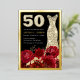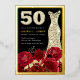 Red Roses Golden Dress 50th Birthday Party Gold Foil Invitation