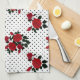 Red roses on a polka dot background. tea towel