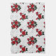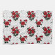 Red roses on a white background with black polka dots.