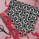 Elegant floral tissue paper design featuring red roses on a black and white geometric pattern.