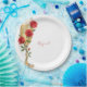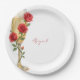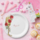 Red Roses on Champagne Shower paper plates. Name in red modern script. Watercolor image. Shower paper goods. Red roses shower.