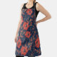 Vibrant hand-drawn red flowers on a dark blue background! Perfect for summer fashion.