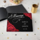 Red Roses Photo Calligraphy Script Black Wedding Guest Book. Capture the timeless romance of your special day with this elegant wedding guest book, featuring a stunning deep black background adorned with lush, vibrant red roses and a graceful script calligraphy. This keepsake is designed to beautifully preserve the heartfelt messages and well wishes from your cherished guests, making it a treasured memento of your union. The classic combination of deep red roses and sophisticated typography creates an atmosphere of luxury and romance, perfect for any elegant classy wedding celebration. You can get a white, gold or silver marker for your guests to sign their best wishes if you choose the black inner pages.