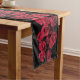 This pretty floral table runner is decorated with a repeating abstract pattern of red rose flowers on a pure black background. What a lovely idea for gardeners!