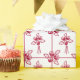 The design features abstract bunches and clusters of red roses in an elegant, square motif.