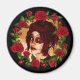 This design features A Red themed sugar skull, sugar Doll, Day of the dead framed with beautiful red roses