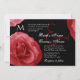 This red black and white roses design on a soft black background makes a distinctively different wedding invitation, and is currently featured on an ice hued metallic paper which gives your invitation a special shimmer and shine.You can experiment with different paper types to get just the look you want. If you want a glossy finish (which is only applied to the front side of your invitation) choose the linen, basic or metallic papers. If you want a matte finish, choose the specked, felt, or recycled. This invitation comes with an A7 sized envelope.