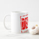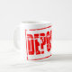 Red rubber stamp effect deposit coffee mug