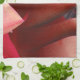 The abstract artwork in red by ZoeSPEAK on this Kitchen Towel was made from Zoe’s original photograph of banana leaves. The huge leaves curve out from the tree in ruffled shapes basking in the sunlight. Pale shadows show the linear pattern of ribs in each leaf. The upper leaf catches the light, which makes the colours bright. The lower leaf, its beautiful curves in shadow, is a rich, deep colour.