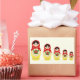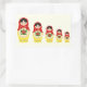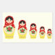 A set of matryoshkas consist of a wooden figure which separates, top from bottom, to reveal a smaller figure of the same sort inside, which has, in turn, another figure inside of it, and so on.
