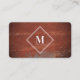 Red Rustic Rust Metallic Texture Monogram Initial Business Card