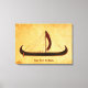 A Viking long ship with a red sail seen in profile from the right side and superimposed on an old paper background image. Customise by adding your own text.