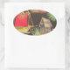 Red Sailboat Landscape Oil Painting Art Print Oval Sticker