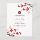 Red Cherry Blossoms Or Sakura Spring Flowers And Round Double Happiness Chinese Wedding Save The Date Postcard.
